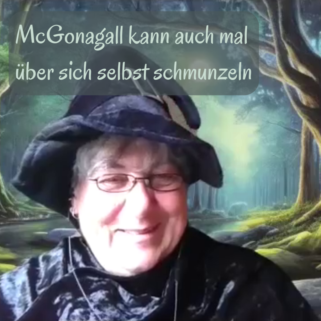 Wir sind doch ein Podcast, wozu also Requisiten? In jeder unserer bisherigen 21 Folgen gibt es ein kleines sichtbares Zeichen der Rolle: ein Hut, ein Schal, ein Kleidungsstück, ein digitaler Schnurrbart über Zoom, eine improvisierte Kopfbedeckung. Warum machen wir das? Ein ganz profaner Grund: Wir veröffentlichen unsere Folgen auch auf Youtube. Da verdeutlicht es einfach die Rolle visuell. Aber ein zweiter Grund ist viel wesentlicher: Sobald eine von uns das Accessoire aufsetzt, verändert sich etwas. Die Haltung, die Stimme oder der Blick auf die Welt der Figur. Es ist ein sichtbarer Übergang in die Rolle. Zudem hilft es uns, Leichtigkeit zu zulassen – auch bei schweren Themen. Mit einem Schnurrbart von Zoom wird ein Captain Hook lebendiger, mit einem Hexenhut eine McGonagall greifbarer. So kann eine Figur viel “echter” ihre Unsicherheit oder auch Ohnmacht zeigen. Somit ist ein Accessoire kein Gag. Vielmehr ist es eine Einladung, tiefer zu gehen.