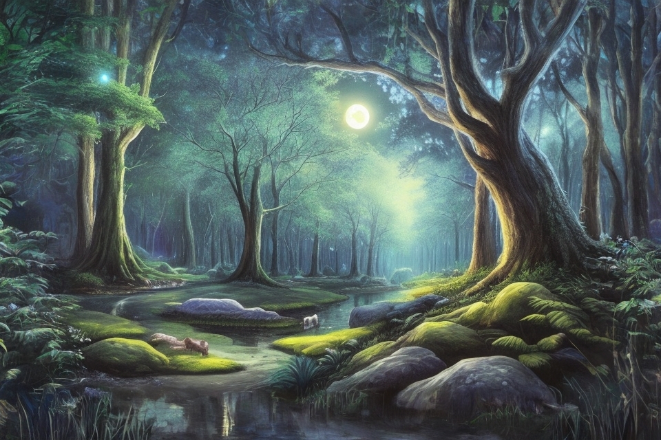 Hinter uns steht bei jeder Aufnahme derselbe Hintergrund: ein Märchenwald. Kein wechselndes Setting, sondern immer derselbe Wald. Für uns ist er mehr ist als Kulisse. Ein Wald ist ein Zwischenraum. Unsere Figuren gehen hinein, um etwas zu klären. Manchmal verirren sie sich, manchmal treffen sie auf Widerstände. Aber es führt jedes mal ein Weg hinaus. Meist ist das ein neuer Weg. Der Märchenwald erinnert uns daran, dass wir uns in einem Geschichtenraum bewegen. Er steht still – während sich im Gespräch etwas bewegt. Vielleicht ist er deshalb der ruhigste und verlässlichste Teil unseres Podcasts.